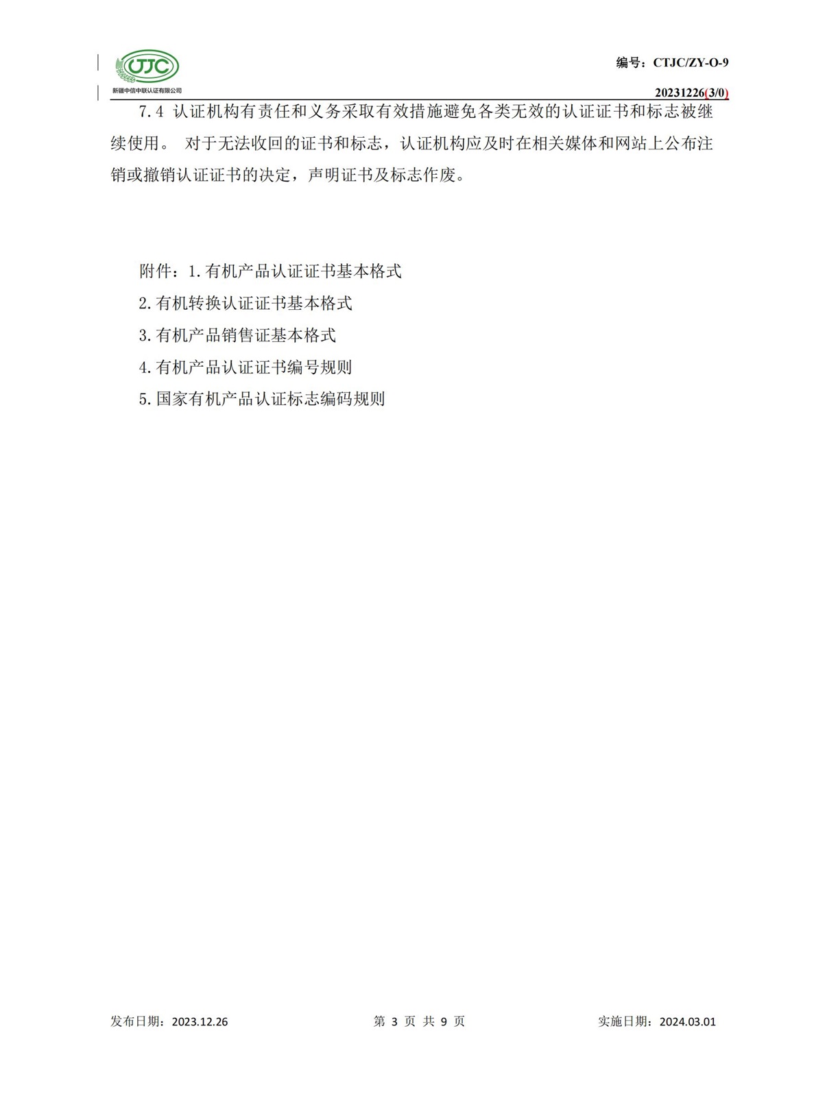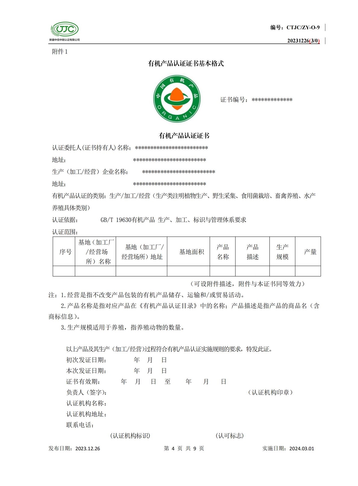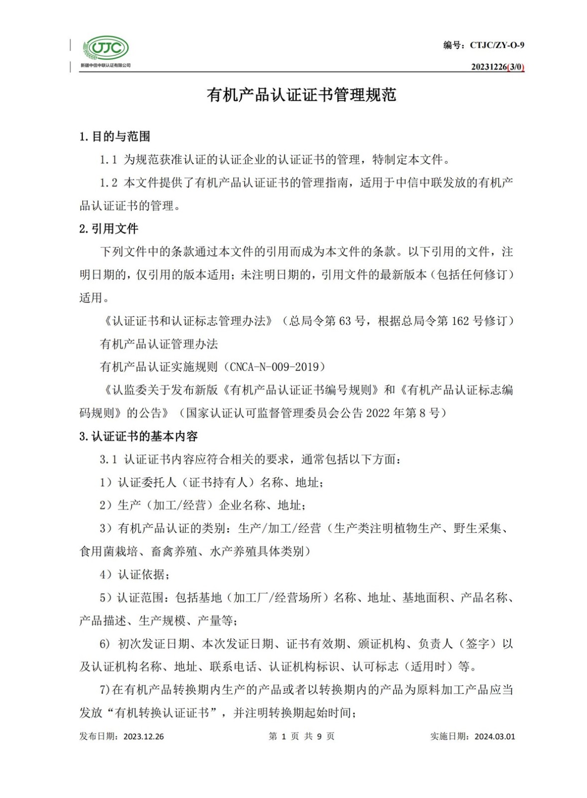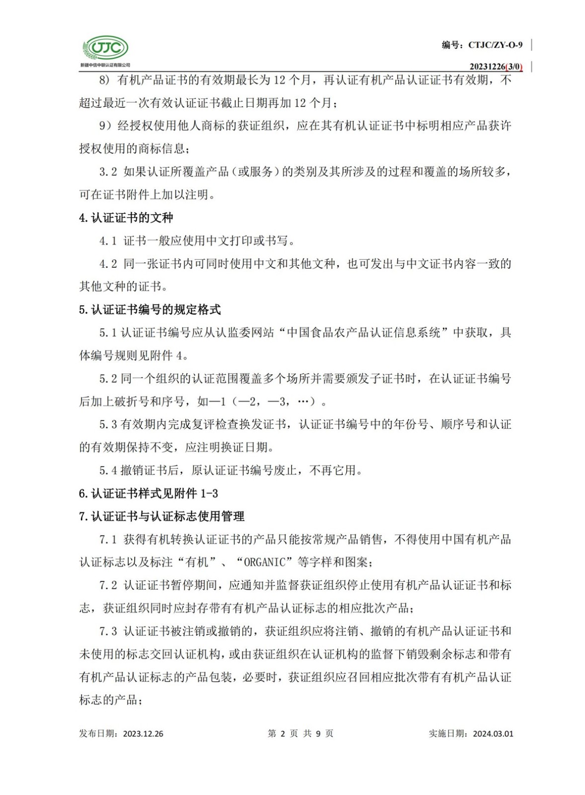 有機(jī)產(chǎn)品認(rèn)證證書管理規(guī)范